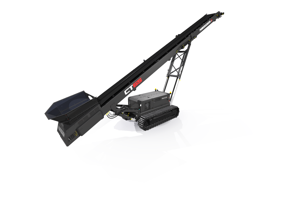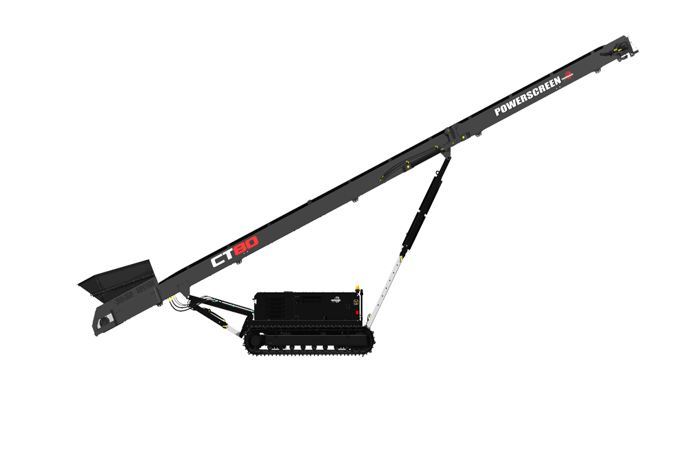 Production Capacity: Up to 441 tons/hr Length: 77' Max. Discharge Height: 34’ 6” at 25° Belt Width: 42" Containerized Shipping : 40’ x 9’6” High Cube Container